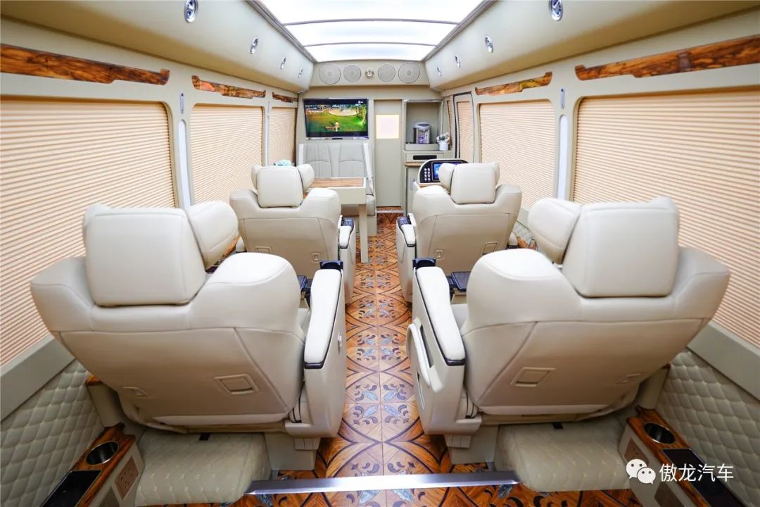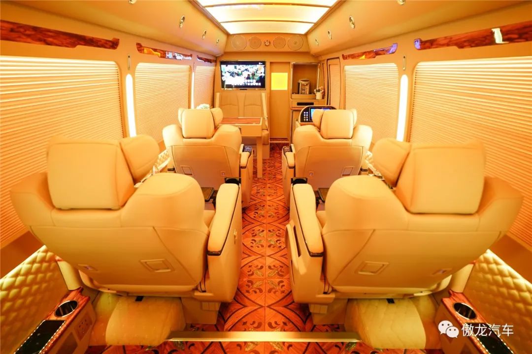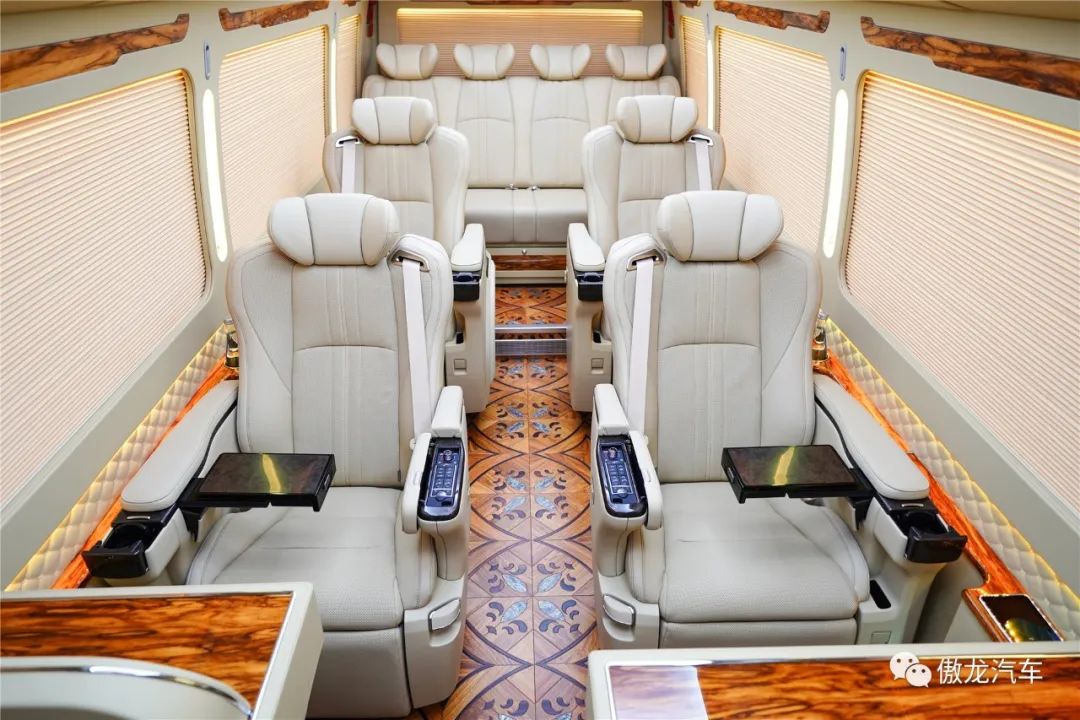 丰田考斯特12座铂金蒙娜丽莎定制版车内搭载了号称四张“全球最舒适”的进口埃尔法航空旗舰级首长座椅。